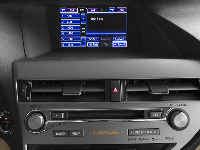 This 2013 Lexus RX 450h in White comes with the following features: 3.5L V6 DOHC VVT-i 24V eCVT AWD 3.5L V6 DOHC VVT-i 24V, AWD, Cloth, 18 x 7.5 5-Spoke Aluminum Wheels, 3.54 Axle Ratio, 4-Wheel Disc Brakes, 9 Speakers, ABS brakes, Air Conditioning, Alloy wheels, AM/FM radio: SiriusXM, Anti-whiplash front head restraints, Auto-dimming door mirrors, Auto-dimming Rear-View mirror, Automatic temperature control, Bluetooth® Hands-Free Phone, Brake assist, Bumpers: body-color, CD player, Compass, Delay-off headlights, Driver door bin, Driver vanity mirror, Dual front impact airbags, Dual front side impact airbags, Electronic Stability Control, Emergency communication system: Safety Connect, Fabric Seat Trim, Four wheel independent suspension, Front anti-roll bar, Front Bucket Seats, Front Center Armrest, Front dual zone A/C, Front fog lights, Front reading lights, Fully automatic headlights, Garage door transmitter: HomeLink, Genuine wood console insert, Genuine wood door panel insert, Heated door mirrors, Illuminated entry, Knee airbag, Low tire pressure warning, Occupant sensing airbag, Outside temperature display, Overhead airbag, Overhead console, Panic alarm, Passenger door bin, Passenger vanity mirror, Power door mirrors, Power driver seat, Power Liftgate, Power passenger seat, Power steering, Power windows, Radio data system, Rear anti-roll bar, Rear reading lights, Rear seat center armrest, Rear side impact airbag, Rear window defroster, Rear window wiper, Remote keyless entry, Security system, Speed control, Speed-sensing steering, Split folding rear seat, Spoiler, Steering wheel mounted audio controls, Telescoping steering wheel, Tilt steering wheel, Traction control, Trip computer, Turn signal indicator mirrors, and Variably intermittent wipers. 30/28 City/Highway MPG
