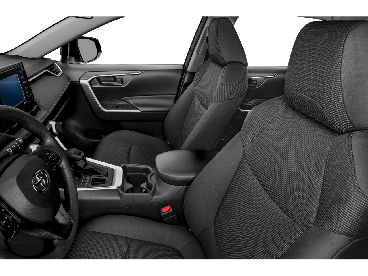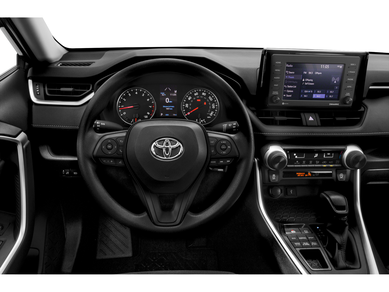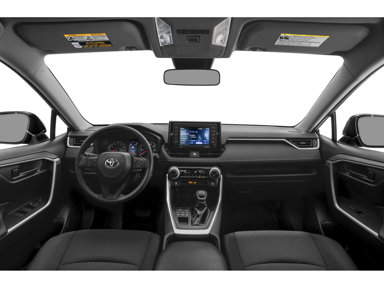 This 2021 Toyota RAV4 comes nicely equipped with Cloth, 17 Steel Wheels, 4-Wheel Disc Brakes, 6 Speakers, ABS brakes, Air Conditioning, AM/FM radio: SiriusXM, AM/FM Stereo, Apple CarPlay/Android Auto, Auto High-beam Headlights, Axle Ratio: 3.177, Brake assist, Bumpers: body-color, Driver door bin, Driver vanity mirror, Dual front impact airbags, Dual front side impact airbags, Electronic Stability Control, Emergency communication system, Exterior Parking Camera Rear, Fabric Seat Trim, Four wheel independent suspension, Front anti-roll bar, Front Bucket Seats, Front Center Armrest, Front reading lights, Illuminated entry, Knee airbag, Low tire pressure warning, Occupant sensing airbag, Outside temperature display, Overhead airbag, Overhead console, Panic alarm, Passenger door bin, Passenger vanity mirror, Power door mirrors, Power steering, Power windows, Radio data system, Rear anti-roll bar, Rear seat center armrest, Rear window defroster, Rear window wiper, Remote keyless entry, Roof rack: rails only, Speed control, Speed-sensing steering, Split folding rear seat, Spoiler, Steering wheel mounted audio controls, Tachometer, Telescoping steering wheel, Tilt steering wheel, Traction control, and Trip computer.