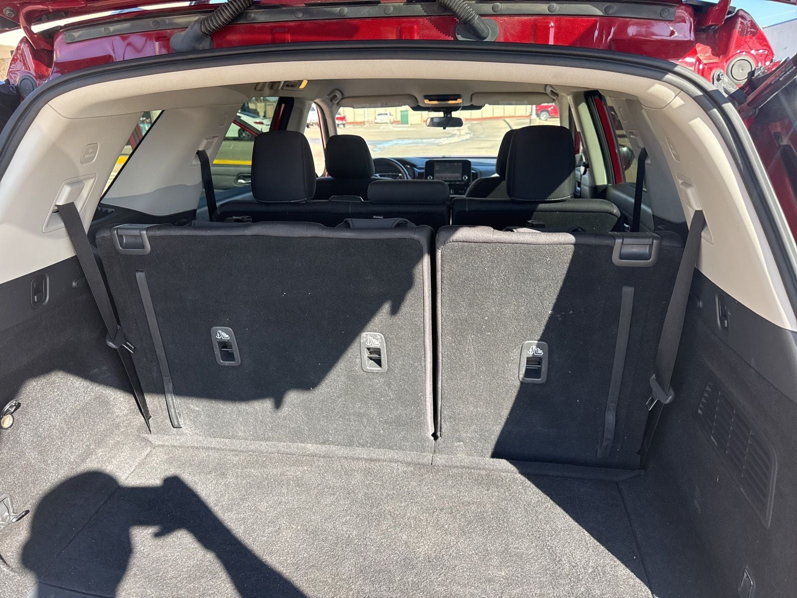 This 2022 Nissan Pathfinder SV in Scarlet Ember Tintcoat comes with the following features: 18 Painted Alloy Wheels, 3rd row seats: bench, 4-Wheel Disc Brakes, 6 Speakers, ABS brakes, Air Conditioning, Alloy wheels, AM/FM radio: SiriusXM, Auto High-beam Headlights, Automatic temperature control, Axle Ratio: TBD, Bench Seat Carpeted Floor Mats (Set of 4), Black Splash Guards (Set of 4), Brake assist, Bumpers: body-color, Cloth Seating Surfaces, Cross Bars, Delay-off headlights, Driver door bin, Driver vanity mirror, Dual front impact airbags, Dual front side impact airbags, Electronic Stability Control, Emergency communication system: NissanConnect Services, Four wheel independent suspension, Front anti-roll bar, Front Bucket Seats, Front Center Armrest, Front dual zone A/C, Front reading lights, Fully automatic headlights, Heated door mirrors, Heated Front Bucket Seats, Heated front seats, Illuminated entry, Knee airbag, Leather steering wheel, Low tire pressure warning, NissanConnect featuring Apple CarPlay and Android Auto, Occupant sensing airbag, Outside temperature display, Overhead airbag, Overhead console, Panic alarm, Passenger door bin, Passenger vanity mirror, Power door mirrors, Power driver seat, Power steering, Power windows, Radio data system, Radio: AM/FM Audio System w/NissanConnect, Rear air conditioning, Rear anti-roll bar, Rear Parking Sensors, Rear reading lights, Rear seat center armrest, Rear side impact airbag, Rear window defroster, Rear window wiper, Reclining 3rd row seat, Remote keyless entry, Security system, Speed control, Speed-sensing steering, Split folding rear seat, Spoiler, Steering wheel mounted audio controls, Tachometer, Telescoping steering wheel, Tilt steering wheel, Traction control, Trip computer, Turn signal indicator mirrors, and Variably intermittent wipers. Odometer is 7823 miles below market average! 21/26 City/Highway MPG