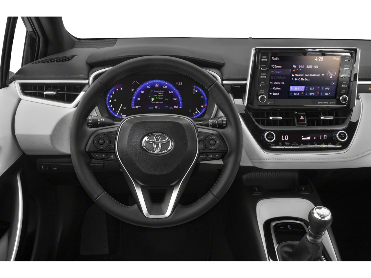 This 2022 Toyota Corolla Hatchback comes nicely equipped with 4-Wheel Disc Brakes, 6 Speakers, ABS brakes, Air Conditioning, Alloy wheels, AM/FM radio: SiriusXM, Apple CarPlay/Android Auto, Auto High-beam Headlights, Automatic temperature control, Blind Spot Monitor (BSM), Brake assist, Bumpers: body-color, Compass, Delay-off headlights, Driver door bin, Driver vanity mirror, Dual front impact airbags, Dual front side impact airbags, Dual Mode Air Conditioner, Electronic Stability Control, Emergency communication system: Safety Connect with 1-year trial, Exterior Parking Camera Rear, Fabric/Leather Seat Trim, Four wheel independent suspension, Front anti-roll bar, Front Bucket Seats, Front Center Armrest, Front dual zone A/C, Front Fog & Driving Lamp, Front fog lights, Front reading lights, Heated door mirrors, Heated front seats, Heated Sport Front Seats, Htd Power Outside Mirrors w/Turn Signal Indicators, Illuminated entry, Knee airbag, Leather Shift Knob, Low tire pressure warning, MPH Speedometer, Occupant sensing airbag, Outside temperature display, Overhead airbag, Overhead console, Panic alarm, Passenger door bin, Passenger vanity mirror, Piano Black Inner Door Garnish, Power door mirrors, Power driver seat, Power steering, Power windows, Radio data system, Radio: Audio Plus, Rear anti-roll bar, Rear seat center armrest, Rear side impact airbag, Rear window defroster, Rear window wiper, Remote keyless entry, Security system, Speed control, Speed-sensing steering, Split folding rear seat, Spoiler, Steering wheel mounted audio controls, Tachometer, Telescoping steering wheel, Tilt steering wheel, Traction control, Trip computer, Turn signal indicator mirrors, Variably intermittent wipers, and Wheels: 18 Bright Machine-Finished Aluminum.