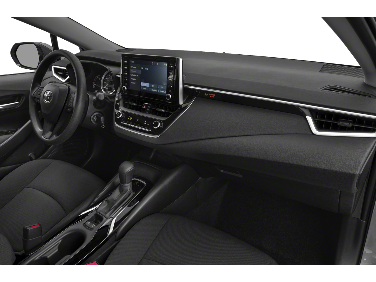 This 2022 Toyota Corolla comes nicely equipped with 4-Wheel Disc Brakes, 6 Speakers, ABS brakes, Air Conditioning, AM/FM radio: SiriusXM, Apple CarPlay/Android Auto, Auto High-beam Headlights, Automatic temperature control, Brake assist, Bumpers: body-color, Delay-off headlights, Driver door bin, Driver vanity mirror, Dual front impact airbags, Dual front side impact airbags, Electronic Stability Control, Emergency communication system: Safety Connect with 1-year trial, Exterior Parking Camera Rear, Four wheel independent suspension, Front anti-roll bar, Front Bucket Seats, Front Center Armrest, Front reading lights, Fully automatic headlights, Illuminated entry, Knee airbag, Low tire pressure warning, Occupant sensing airbag, Outside temperature display, Overhead airbag, Panic alarm, Passenger door bin, Passenger vanity mirror, Power door mirrors, Power steering, Power windows, Premium Fabric Seat Trim, Radio data system, Radio: Audio, Rear anti-roll bar, Rear seat center armrest, Rear side impact airbag, Rear window defroster, Remote keyless entry, Security system, Speed control, Split folding rear seat, Steering wheel mounted audio controls, Tachometer, Telescoping steering wheel, Tilt steering wheel, Traction control, Trip computer, Variably intermittent wipers, and Wheels: 16 Wide Vent Steel.