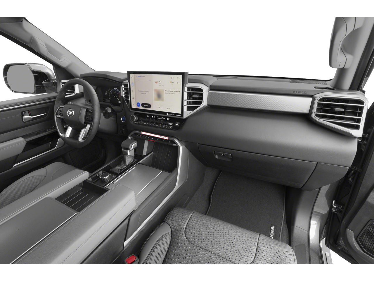 This 2023 Toyota Sequoia comes nicely equipped with V6 Hybrid, 10-Speed Automatic, 4WD, ABS brakes, Active Cruise Control, Alloy wheels, Electronic Stability Control, Front dual zone A/C, Heated & Ventilated Front Seats, Heated door mirrors, Heated front seats, Illuminated entry, Low tire pressure warning, Navigation System, Power Liftgate, Power moonroof, Remote keyless entry, Traction control, 3.31 Axle Ratio, 3rd row seats: split-bench, 4-Wheel Disc Brakes, 8 Speakers, Air Conditioning, AM/FM radio: SiriusXM, Anti-whiplash front head restraints, Apple CarPlay/Android Auto, Auto High-beam Headlights, Auto-dimming door mirrors, Auto-dimming Rear-View mirror, Automatic temperature control, Brake assist, Bumpers: body-color, Delay-off headlights, Driver door bin, Driver vanity mirror, Dual front impact airbags, Dual front side impact airbags, Emergency communication system: Safety Connect (10-year trial), Front anti-roll bar, Front Bucket Seats, Front Center Armrest w/Storage, Front fog lights, Front reading lights, Front wheel independent suspension, Fully automatic headlights, Garage door transmitter: HomeLink, Headlight cleaning, Heated steering wheel, Knee airbag, Leather Shift Knob, Leather steering wheel, Memory seat, Navigation system: Drive Connect (1 year trial) includes Cloud Navigation with real time traffic and Google POI, Occupant sensing airbag, Outside temperature display, Overhead airbag, Overhead console, Panic alarm, Passenger door bin, Passenger vanity mirror, Power door mirrors, Power driver seat, Power passenger seat, Power steering, Power windows, Radio: Toyota Multimedia w/14 Display, Rear air conditioning, Rear reading lights, Rear seat center armrest, Rear window defroster, Rear window wiper, Reclining 3rd row seat, Security system, SofTex Seat Trim, Speed control, Speed-sensing steering, Split folding rear seat, Spoiler, Steering wheel mounted audio controls, Tachometer, Telescoping steering wheel, Tilt steering wheel, Trip computer, Turn signal indicator mirrors, Variably intermittent wipers, Ventilated front seats, Voltmeter, and Wheels: 20 Machined-Finish Alloy.