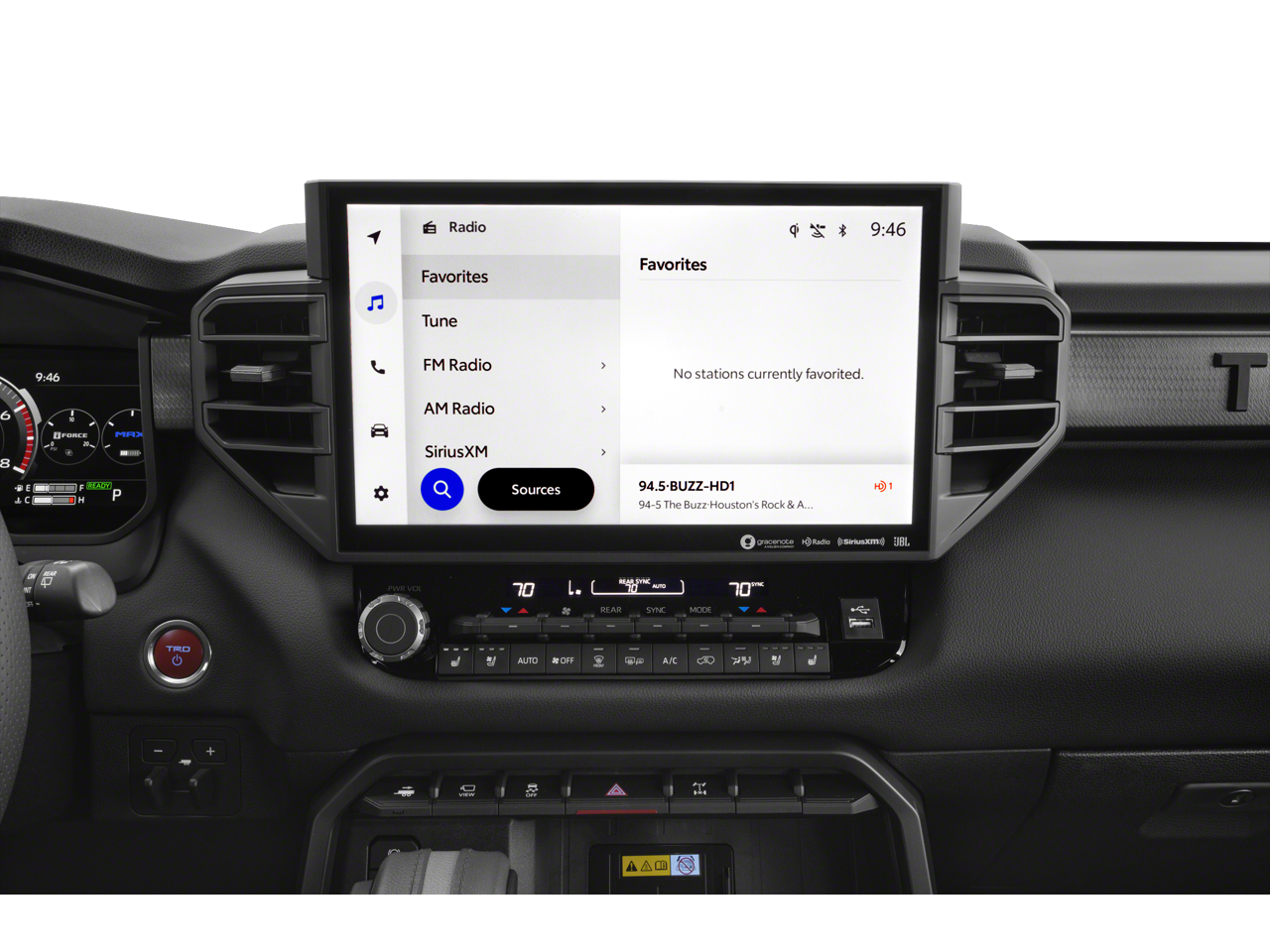 This 2024 Toyota Sequoia TRD Pro in Black comes with the following features: V6 Hybrid 10-Speed Automatic 4WD Tow Technology Package, V6 Hybrid, 10-Speed Automatic, 4WD, ABS brakes, Active Cruise Control, Alloy wheels, Compass, Electronic Stability Control, Front dual zone A/C, Heated & Ventilated Front Seats, Heated door mirrors, Heated front seats, Illuminated entry, Low tire pressure warning, Navigation System, Power moonroof, Remote keyless entry, Traction control, 14 Speakers, 3.31 Axle Ratio, 3rd row seats: split-bench, 4-Wheel Disc Brakes, Air Conditioning, AM/FM radio: SiriusXM, Anti-whiplash front head restraints, Apple CarPlay/Android Auto, Auto High-beam Headlights, Auto-dimming door mirrors, Auto-dimming Rear-View mirror, Automatic temperature control, Brake assist, Bumpers: body-color, Cast Aluminum Step & Step Cover, Delay-off headlights, Driver door bin, Driver vanity mirror, Dual front impact airbags, Dual front side impact airbags, Emergency communication system: Safety Connect (10-year trial), Exterior Parking Camera Rear, Front anti-roll bar, Front Bucket Seats, Front Center Armrest w/Storage, Front fog lights, Front reading lights, Front wheel independent suspension, Fully automatic headlights, Garage door transmitter: HomeLink, Headlight cleaning, Heated steering wheel, JBL 14 Speakers, Knee airbag, Leather Shift Knob, Leather steering wheel, Memory seat, Navigation system: Drive Connect (1 year trial) includes Cloud Navigation with real time traffic and Google POI, Occupant sensing airbag, Outside temperature display, Overhead airbag, Overhead console, Panic alarm, Passenger door bin, Passenger vanity mirror, Power door mirrors, Power driver seat, Power passenger seat, Power steering, Power windows, Premium audio system: JBL, Pro High Grade Full LED Headlamps, Radio: JBL Premium Audio System, Rear air conditioning, Rear reading lights, Rear seat center armrest, Rear window defroster, Rear window wiper, Reclining 3rd row seat, Security system, Speed control, Speed-sensing steering, Split folding rear seat, Spoiler, Sport steering wheel, Steering wheel mounted audio controls, Tachometer, Telescoping steering wheel, Tilt steering wheel, TRD Pro Leather-Trimmed Steering Wheel, TRD Pro LED Light Bar, TRD Pro SofTex Seat Trim, TRD Pro Under Cover & Protector, Trip computer, Turn signal indicator mirrors, Variably intermittent wipers, Ventilated front seats, Voltmeter, Wheels: 20 Machined-Finish Alloy, and Wireless Smartphone Charger.