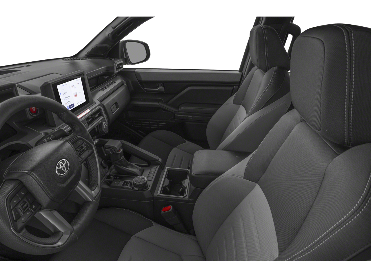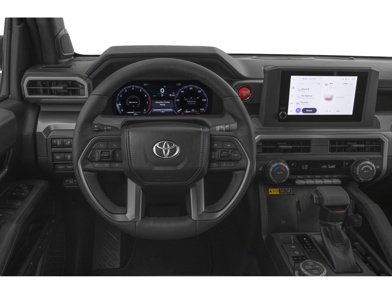 Inside, the Tacoma Hybrid TRD Off Road offers a premium audio system with a 14-inch touchscreen display, wireless Apple CarPlay and Android Auto compatibility, and a SiriusXM 3-month Platinum Plan trial subscription. The Blackout Package adds a distinctive touch with black badge overlays and a black tailgate insert, while the Connectivity Kit keeps you seamlessly connected on the go.