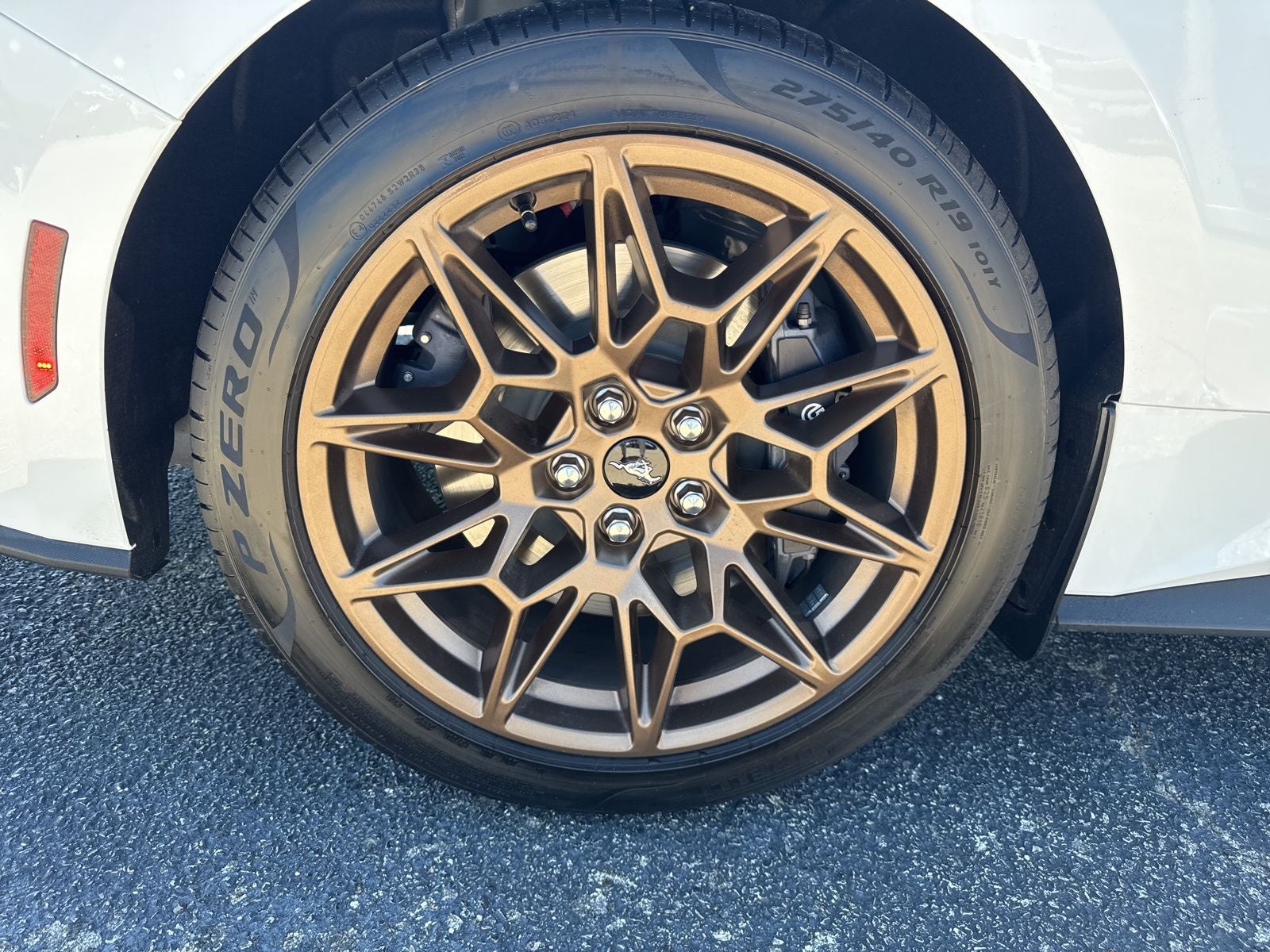 This 2026 Ford Mustang GT in Oxford White comes with the following features: 5.0L V8 Ti-VCT 6-Speed Manual RWD Bronze Appearance Package (Sinister Bronze GT 5.0 and Pony Badges), Equipment Group 301A High Package (9-Speaker Stereo System, AM/FM Stereo, Ambient Lighting with MyColor, Cloth/Vinyl Heated Bucket Seats, SiriusXM with 360L and HD Radio, Wheels: 8 x 8.5 Ebony Black Painted Aluminum, and SYNC 4), GT Performance Package (Accent Stitched Center Console Lid, Black Painted Strut-Tower Brace, Brembo Brake System with Performance Linings, Electric Hand-Operated Parking Brake (drift Brake), Front Towing Hooks, Heavy-Duty Front Springs, Painted High Gloss Black/Carbon Black Grille, Unique Chassis Tuning, Unique Stability Control, and Upsized Rear Sway Bar), Mustang GT, Ford Gold Certified Certified, 2D Coupe, 5.0L V8 Ti-VCT, 6-Speed Manual, RWD, Oxford White, Black Onyx Cloth, 3.73 TORSEN Limited-Slip Rear Axle Ratio, Active Valve Performance Exhaust, 1st Row Carpeted Black Floor Mats, 4-Wheel Disc Brakes, ABS brakes, Air Conditioning, Alloy wheels, Auto High-beam Headlights, Automatic temperature control, Brake assist, Bumpers: body-color, Compass, Delay-off headlights, Driver door bin, Driver vanity mirror, Dual front impact airbags, Dual front side impact airbags, Electronic Stability Control, Emergency communication system: 911 Assist, Exterior Parking Camera Rear, Four wheel independent suspension, Front anti-roll bar, Front Bucket Seats, Front Center Armrest, Front dual zone A/C, Front reading lights, Fully automatic headlights, Illuminated entry, Knee airbag, Leather Shift Knob, Leather steering wheel, Low tire pressure warning, Occupant sensing airbag, Outside temperature display, Overhead airbag, Overhead console, Panic alarm, Passenger door bin, Passenger vanity mirror, Power door mirrors, Power steering, Power windows, Radio data system, Rain sensing wipers, Rear anti-roll bar, Rear Parking Sensors, Rear window defroster, Remote keyless entry, Speed control, Speed-sensing steering, Speed-Sensitive Wipers, Split folding rear seat, Sport steering wheel, Steering wheel mounted audio controls, Tachometer, Telescoping steering wheel, Tilt steering wheel, Traction control, Trip computer, Variably intermittent wipers, and Voltmeter. Certified.